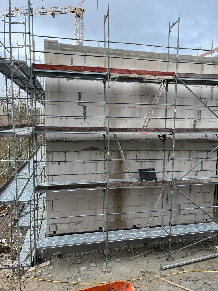 Momentan wird die Kelleretage gebaut, welche bis zu den Herbstferien fertig sein soll. Die anderen Etagen sollen bis voraussichtlich Dezember errichtet worden sein.