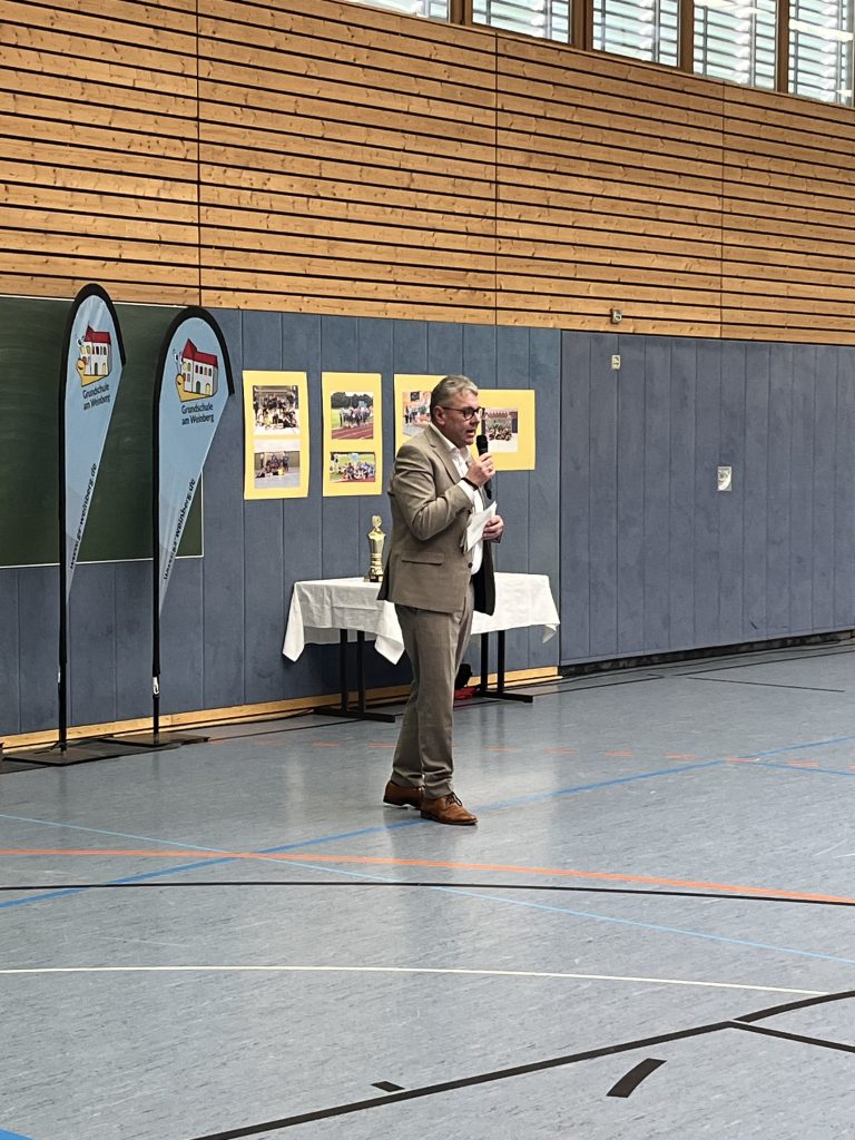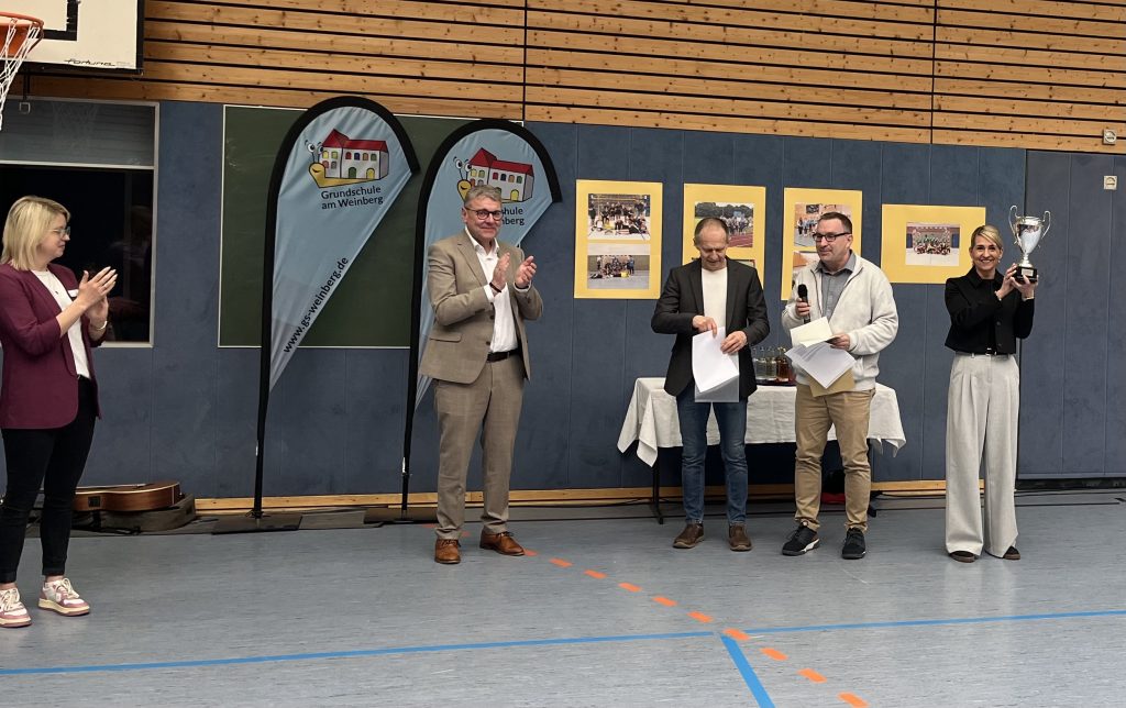 Ein besonderer Höhepunkt der Feier war die Übergabe eines Pokals an unsere Schule als Anerkennung für die sportlichen Leistungen.