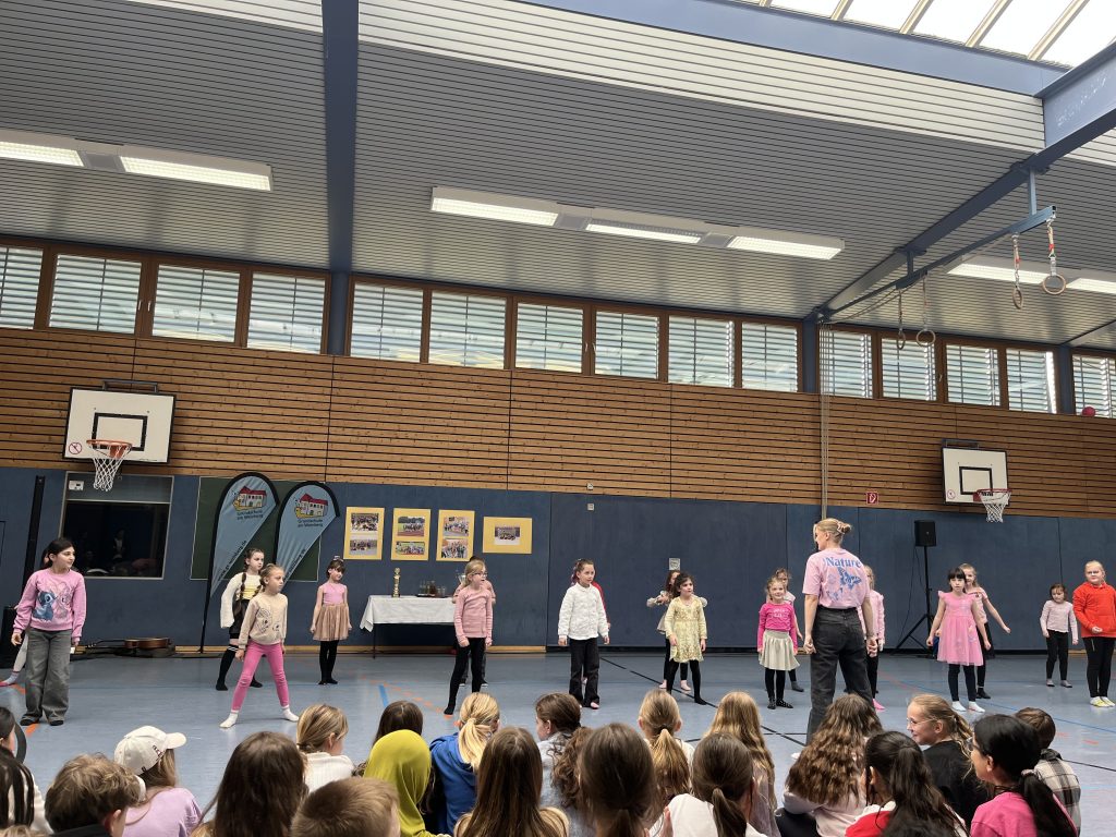 Die Schülerinnen und Schüler hatten ein abwechslungsreiches Programm vorbereitet. Passend zum sportlichen Anlass gab es Beiträge zum Basketball und Tanzen sowie musikalische Darbietungen, die für eine festliche Stimmung sorgten.